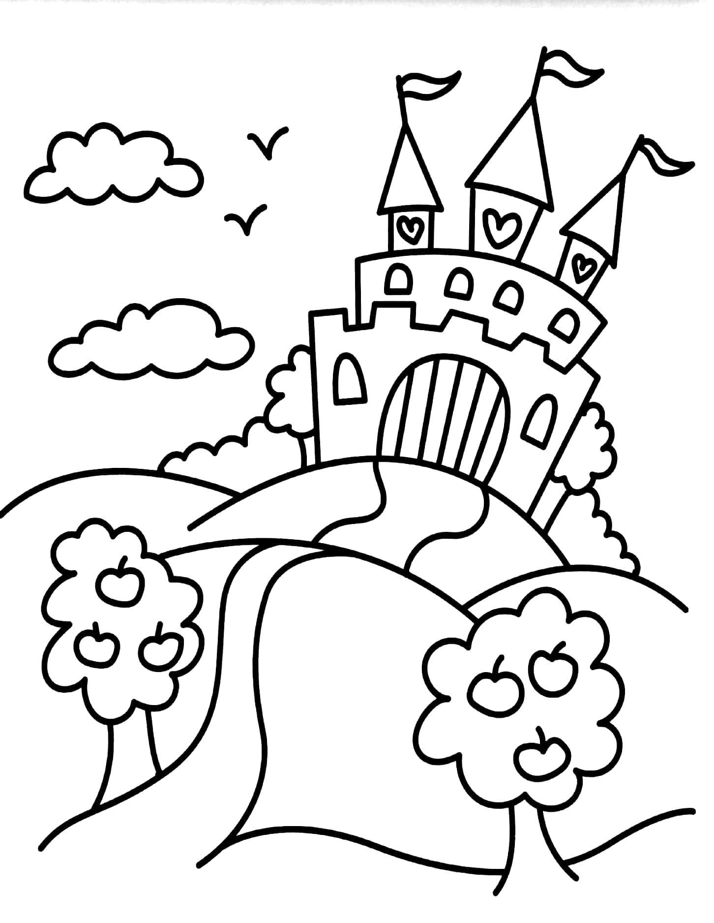 Color the books and let the princess find her palace.