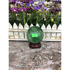 Hợp mệnh Mộc - Hỏa Chất liệu: Đá thạch anh xanh Kích thước: Đường kính 11,3 cm Khối lượng: 2,6 kg Quả cầu phong thủy được làm từ những loại đá và khoáng vật quý