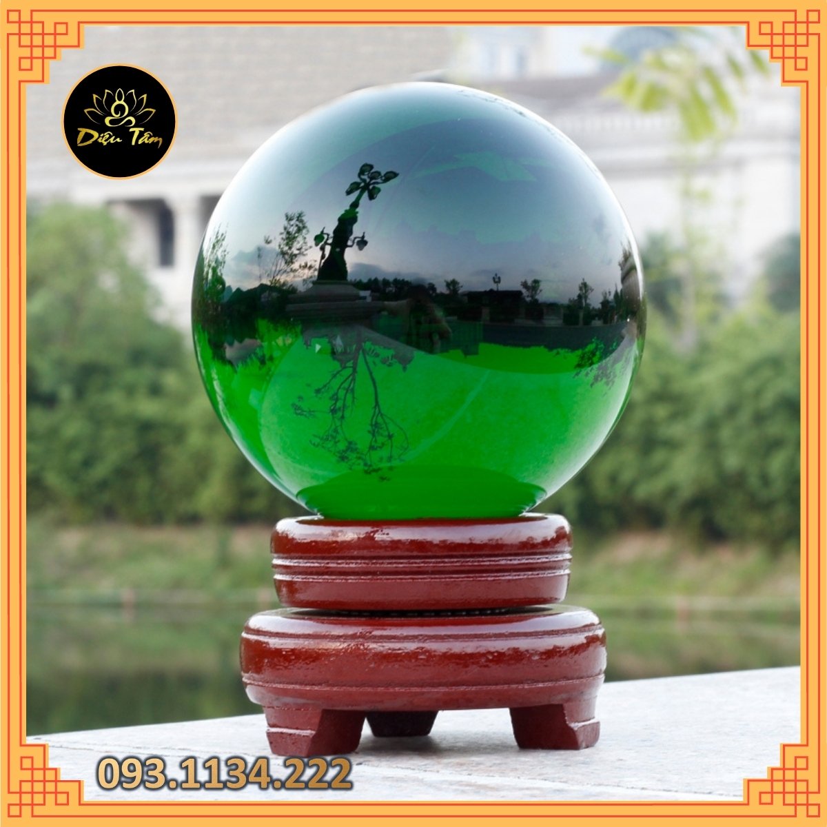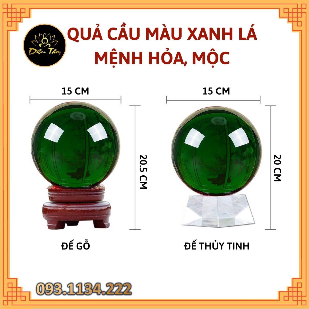 Quả cầu phong thủy pha lê màu xanh lá size to 15cm hợp mệnh Mộc, mệnh Hỏa đồ phong thủy trang trí