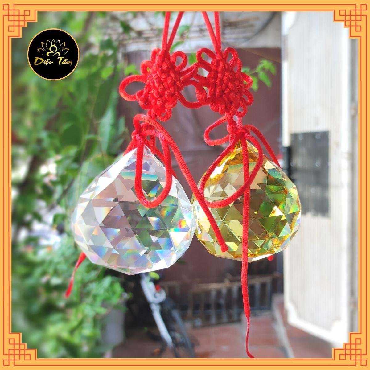 Quả Cầu Treo Thủy Tinh Vát Cạnh nhìn giống như viên kim cương, có thể trang trí nhờ vẻ bề ngoài đẹp, ngoài ra còn có nhiều tác dụng tốt trong phong thủy.