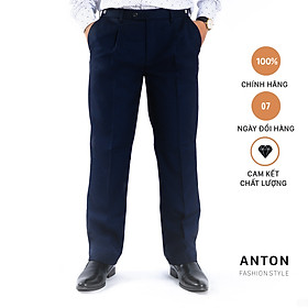 ✨Quần Âu Nam Công Sở Trung Niên Thương Hiệu Anton Dáng Rộng Xếp Ly Màu Xanh Than Mã QA103