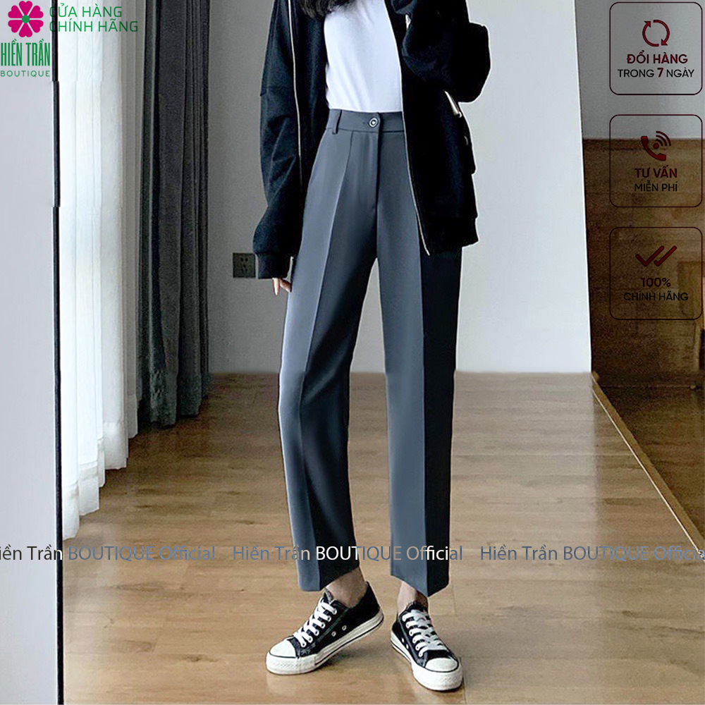 ✨Quần baggy nữ Hiền Trần BOUTIQUE ống đứng, phom dáng Hàn Quốc màu đen xám, đồ công sở đi học