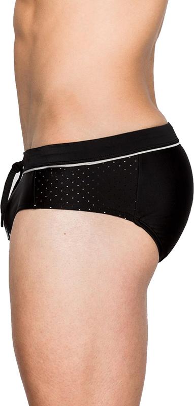 Quần bơi nam tam giác màu trơn / Đồ bơi nam màu đen trơn – Quần bơi nam kiểu dáng tam giác brief sexy – Chất liệu: Nylon co giãn thoải mái, mau khô nước – Thiết kế quần bơi nam màu đen trơn không có họa tiết – Quần bơi nam phối lưới 2 bên hông (các lỗ lưới rất nhỏ) – Lưng quần bơi bằng thun co giãn thoải mái có dây rút bên trong Một chiếc quần bơi phù hợp cho những ai thích sự đơn giản, không hoa văn và màu sắc. Kiểu dáng và thiết kế của quần bơi giúp bạn rất thoải mái khi tham gia hoạt động bơi lội.  Hướng dẫn chọn size quần bơi nam   M L XL 2XL Chiều dài 1/2 thắt lưng (cm) 33 35 37 39 Số đo vòng eo/hông 70-80cm 80-90cm 90-100cm 100-110cm Số đo cân nặng gợi ý (kg) 50 -> 60 60 -> 70 70->75 > 75 * Số đo 1/2 thắt lưng là số đo chính xác của quần (ở trạng thái chưa co giãn), quý khách hàng có thể đo quần đang mặc hiện tại và so sánh với bảng số trên.
