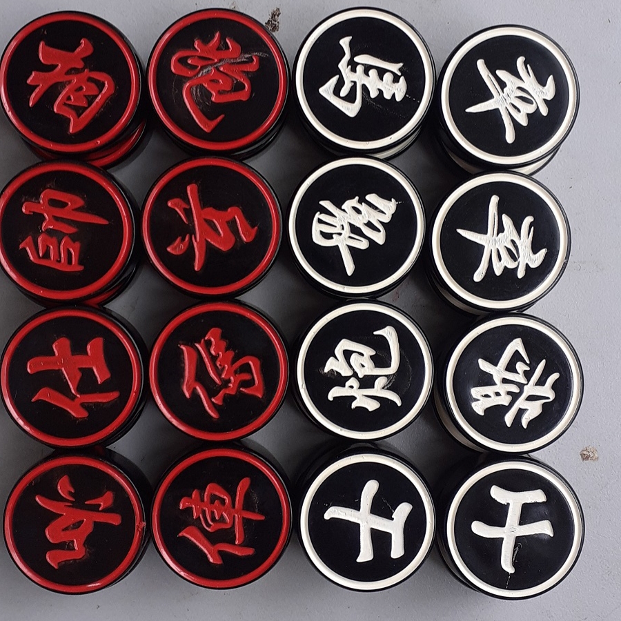 Quân cờ tướng sừng trâu đen-Kích thước: Đường kính ngoài: 3,7 cm x dầy 1,2cmQuân cờ sừng đên hai bên, 16 quân chữ mầu trắng và 16 quân chữ mầu đỏ, quân cờ sừng trâu đen.Quân cờ tướng sừngQuân cờ đ...