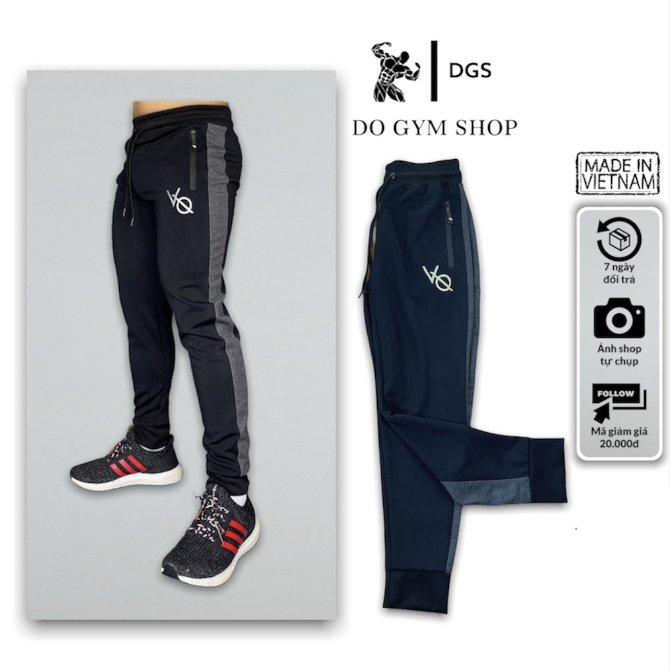 ✨Quần dài tập gym nam DO GYM SHOP sọc xám logo thêu, thun polyester co giãn 4 chiều