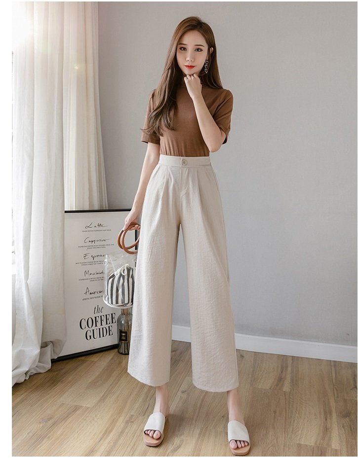 THÔNG TIN SẢN PHẨM: - Sản phẩm: Quần dài nữ - Chất liệu: Linen - Đặc điểm: Ống rộng, Đũng ngắn, Lưng thun - Kích thước: M, L, XL, 2XL - Màu sắc: Trắng,Đen,Be,Muối