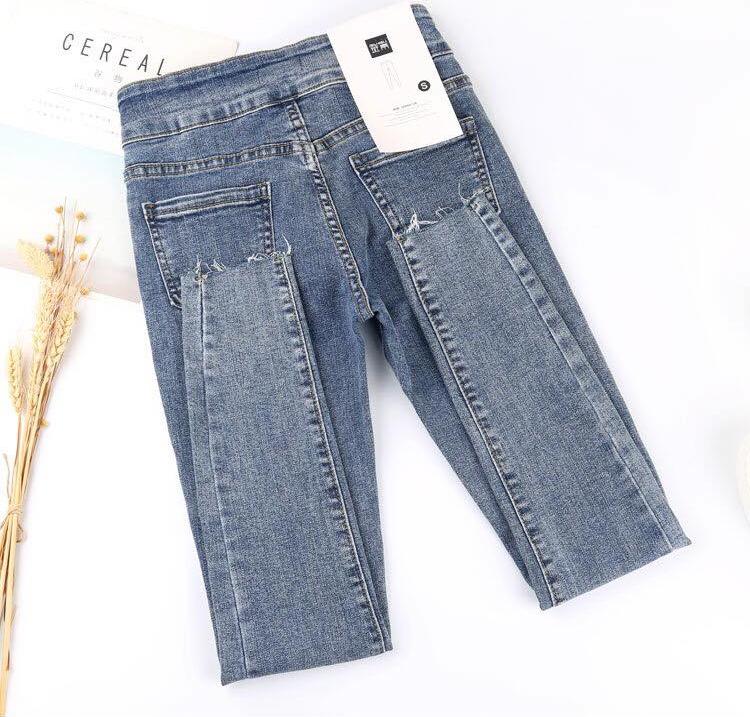 ✨Quần jeans màu xám khói nữ co giãn bó sát chín tất bé gái