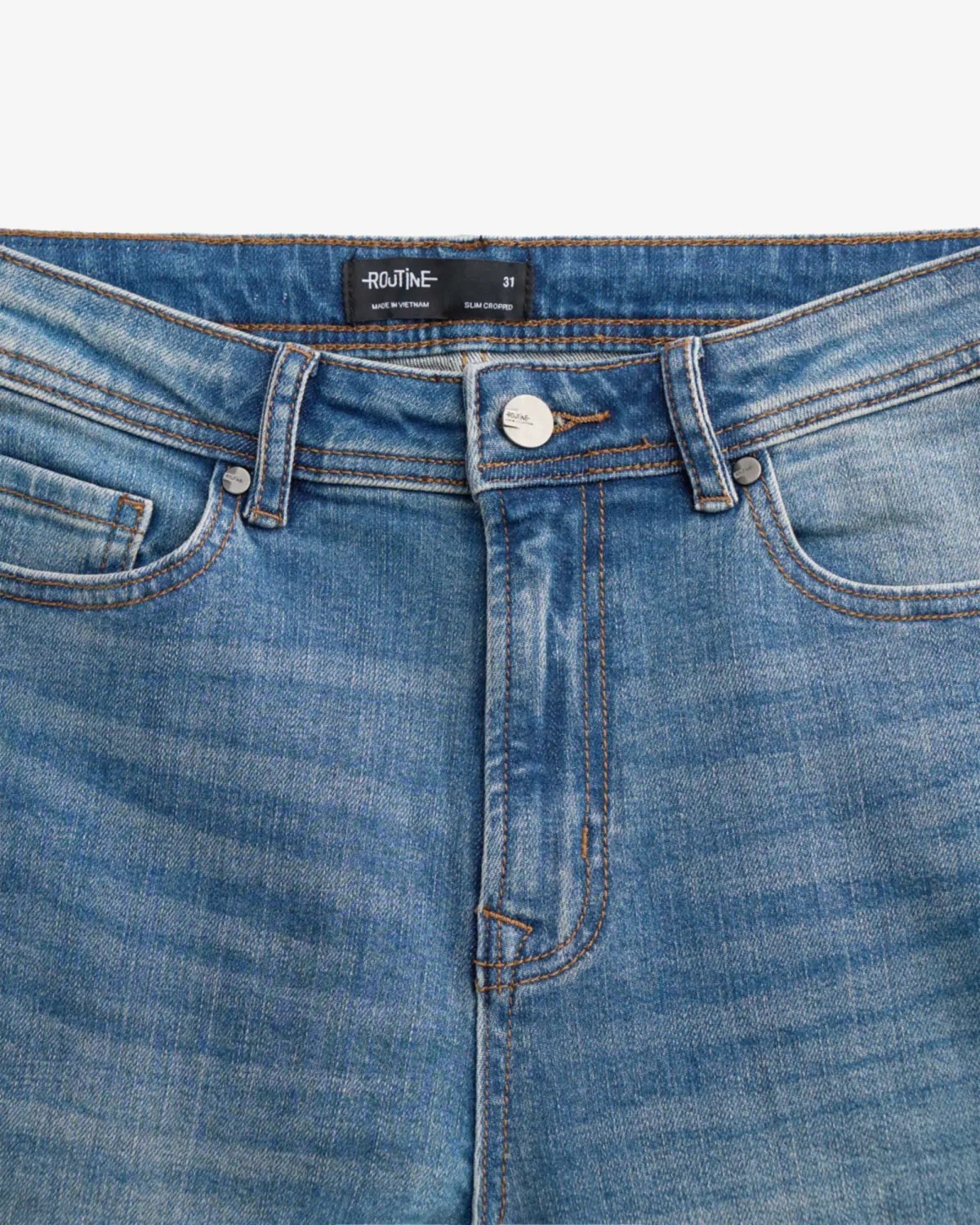 Quần denim nam Form Slim cropped - RT 10S25DPA105C | ROUTINE CÀ MAU Đặc điểm nổi bật Form : Slim cropped Fabric : Denim Gender: Nam Collection: Core Thông tin chi tiết: Mẫu quần denim