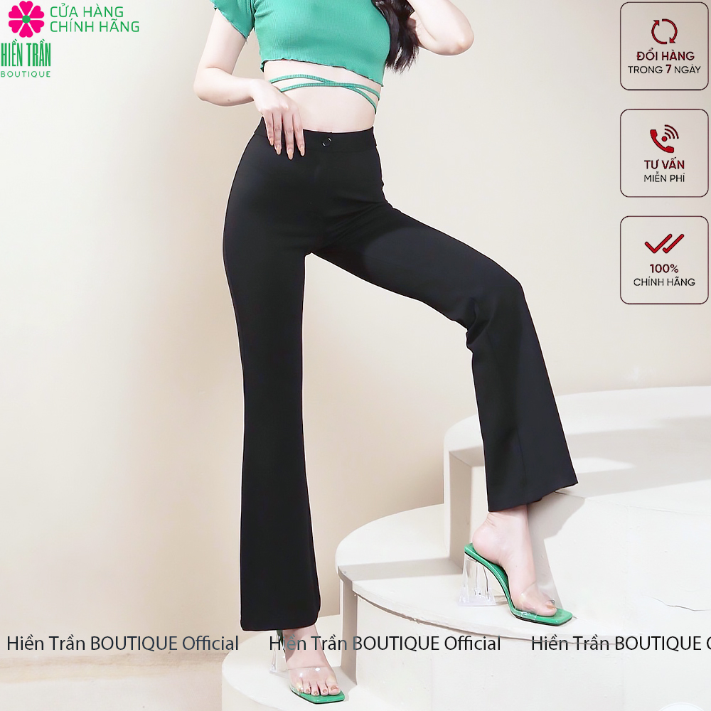 ✨Quần ống loe Hiền Trần BOUTIQUE lưng cạp cao 1 cúc suông rộng nữ dài culottes màu đen