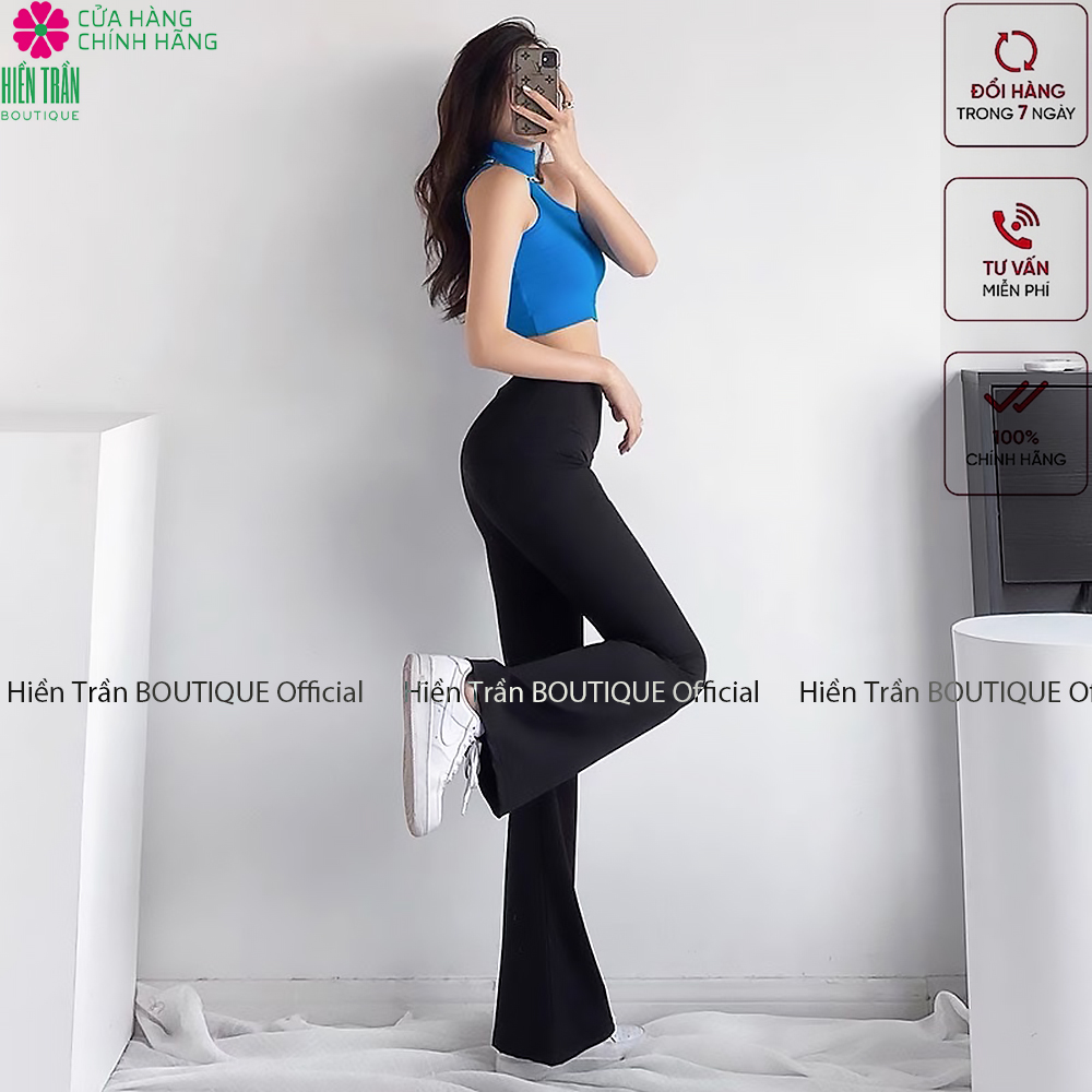 ✨Quần ống loe Hiền Trần BOUTIQUE nữ lưng cạp cao co giãn vải Umi Hàn co giãn tốt dáng dài
