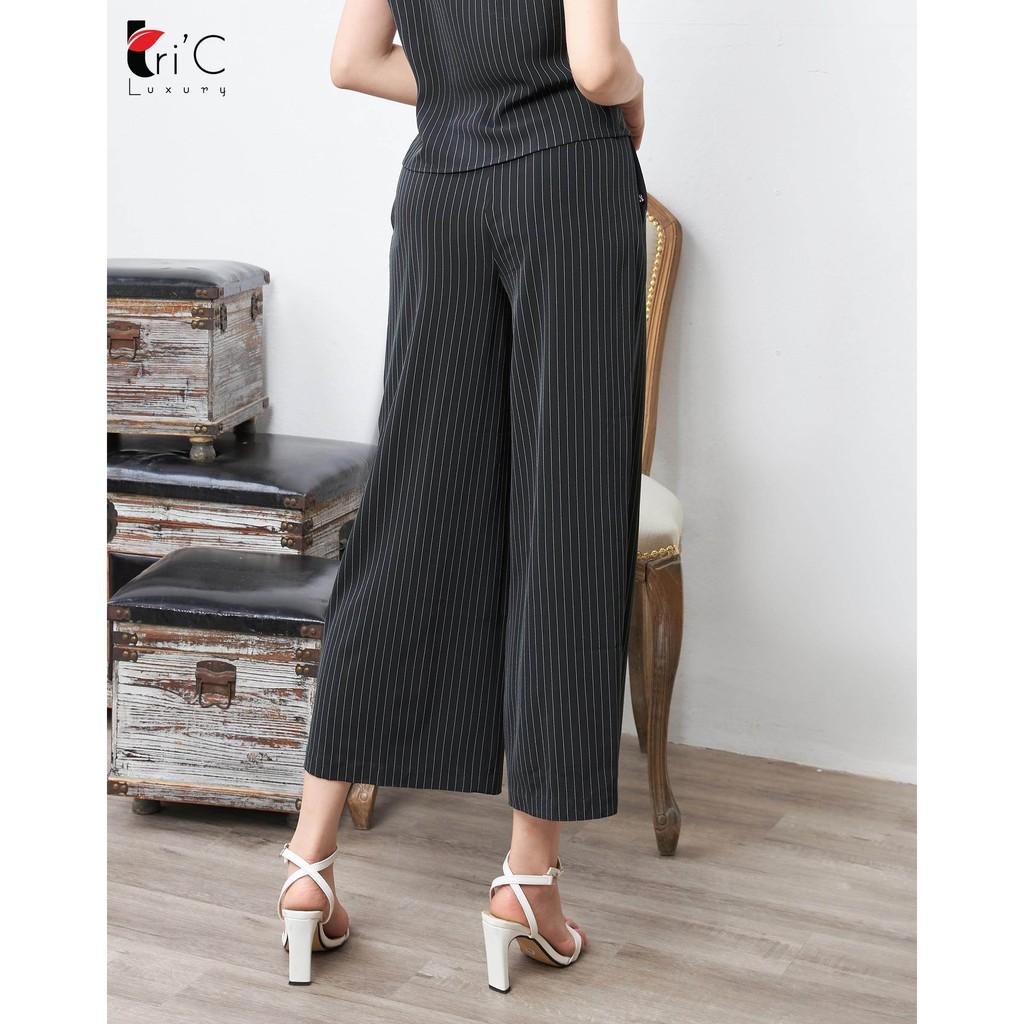 ✨Quần ống suông Tri'C Luxury kẻ xếp ly Đen Q020820