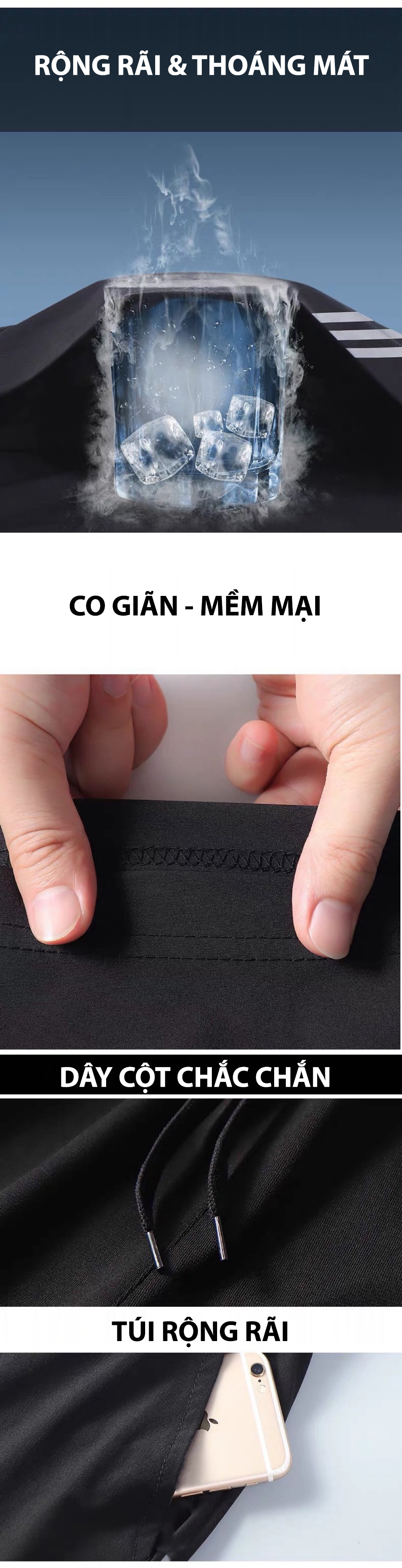Mô Tả Sản Phẩm Quần thiết kế mạnh mẽ, nam tính Form dáng tôn cơ bắp Chất liệu gió cao cấp đem lại sự thoải mái khi tập gym Mềm mịn Không gião Không xù