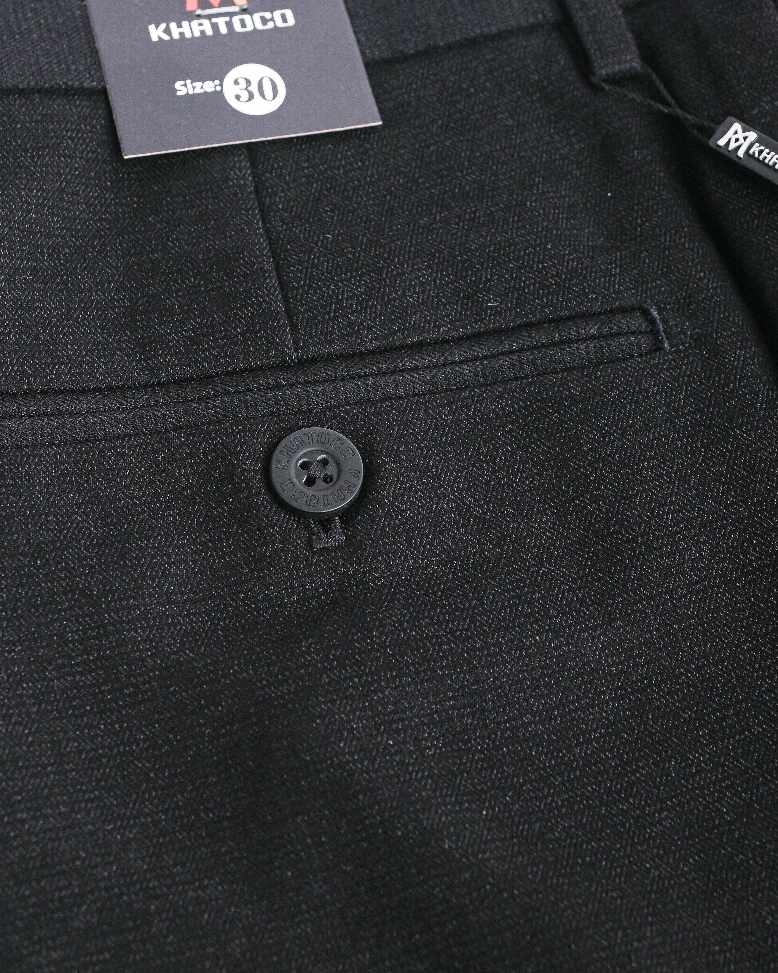 Mô tả sản phẩm – Quần tây nam Khatoco không ly màu đen Chất liệu cao cấp - Thành phần: 70% Terylon, 30% Rayon. - Vải mềm mịn, thoáng khí, bền màu và hạn chế