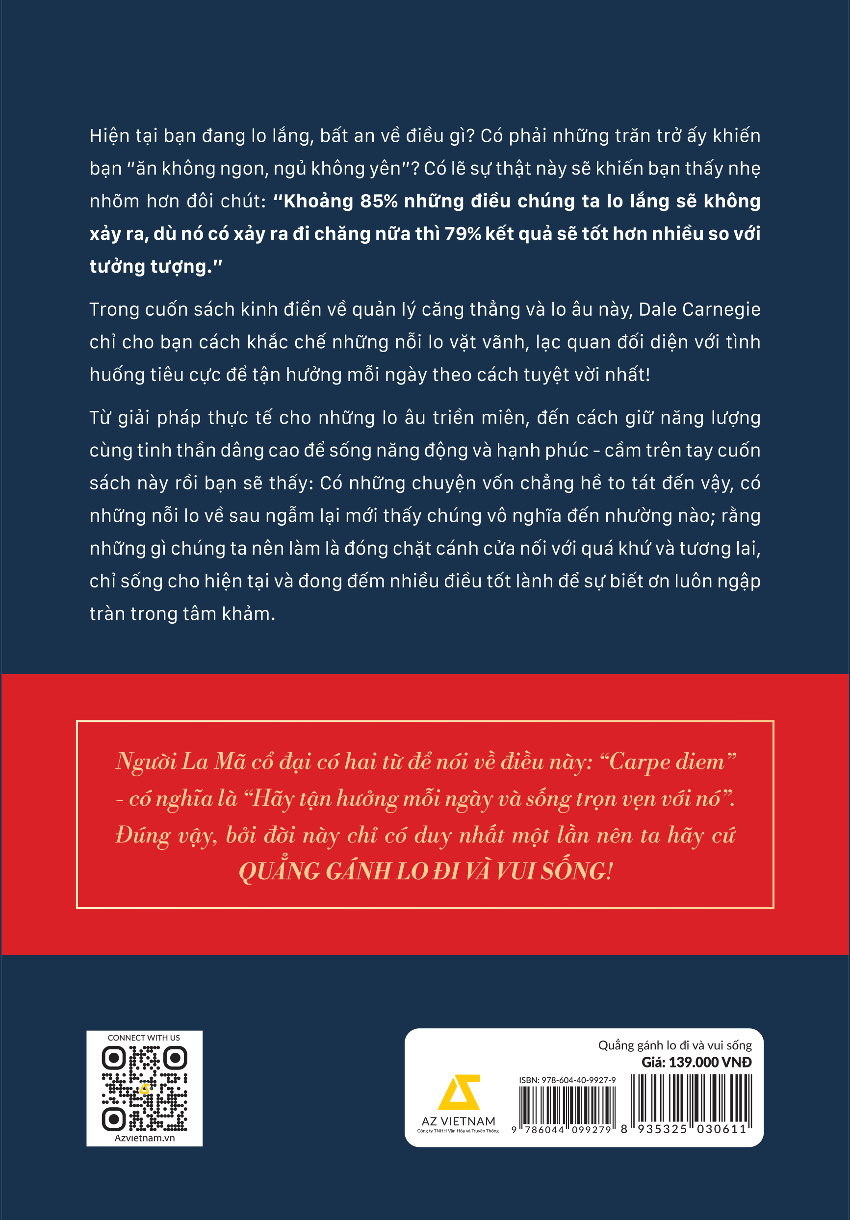 Qua cuốn cẩm nang kinh điển về nghệ thuật sống này, bạn sẽ biết cách đặt giới hạn cho những nỗi lo thông thường, bình tĩnh đối diện và xử lý tình huống tiêu cực khi nó bất ngờ “đánh úp”, điều hướng tâm trí mình đến những điều tốt đẹp xung quanh để thực sự TẬN HƯỞNG MỖI NGÀY THEO CÁCH TUYỆT VỜI NHẤT!