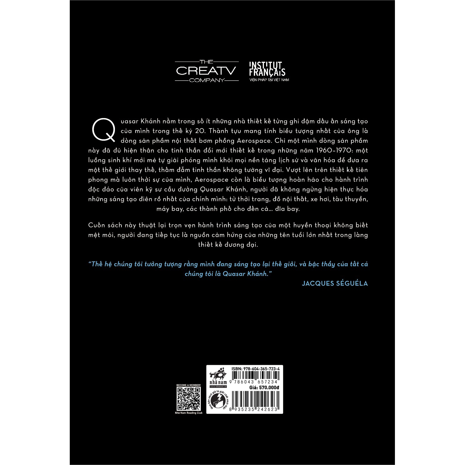 Giới thiệu sách Quasar Khánh nằm trong số ít những nhà thiết kế từng ghi đậm dấu ấn sáng tạo của mình trong thế kỷ 20. Thành tựu mang tính biểu tượng nhất của ông là dòng sản phẩm nội thất bơm phồng Aerospace. Chi một mình dòng sản phẩm này đã đủ hiện thân cho tinh thần đổi mới thiết kế trong những năm 1960-1970: một luồng sinh khí mới mẻ tự giải phóng minh khỏi mọi nền tảng lịch sử và văn hóa để đưa ra một thế giới thay thế, thấm đẫm tinh thần không tưởng vĩ đại. Vượt lên trên thiết kế tiên phong mà luôn thời sự của mình, Aerospace còn là biểu tượng hoàn hảo cho hành trinh độc đáo của viên kỹ sư cầu đường Quasar Khánh, người đã không ngừng hiện thực hóa những sáng tạo điên rồ nhất của chính mình: từ thời trang, đồ nội thất, xe hơi, tàu thuyền, máy bay, các thành phố cho đến cả... đĩa bay.