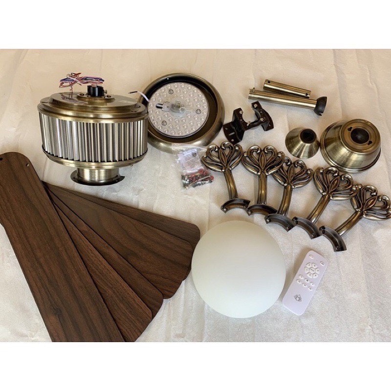 Quạt trần phòng ngủ trang trí phòng khách bàn ăn phong cách cổ điển động cơ đồng bảo hành 48 tháng Chất liệu cánh gỗ thật polywood và cánh sắt Quạt trần phòng ngủ hiện