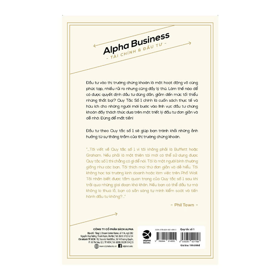 Mua tại TiktokQuy Tắc Số 1 (Rule #1) - Chiến Lược Đơn Giản Để Đầu Tư Hiệu Quả Chỉ Với 15 Phút Mỗi Tuần - Phil Town (bìa mềm) - Giá bìa: 199.000đ I.AI NÊN ĐỌC CUỐN SÁCH NÀY: