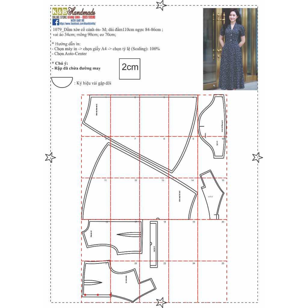 ✨Rập đầm xòe cổ cánh én mã 1079- giấy A0 (BẢN VẼ)