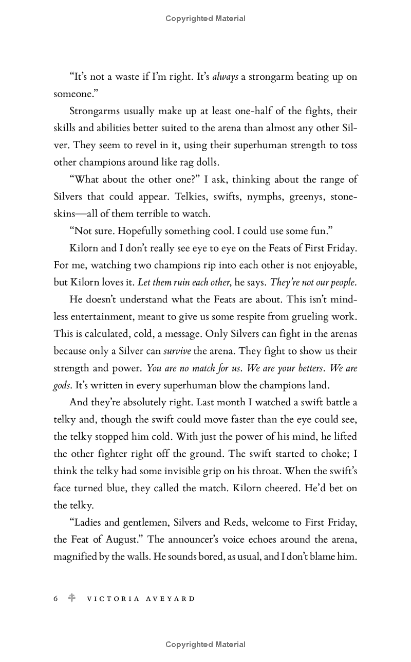 The Reds are commoners, ruled by a Silver elite in possession of god-like superpowers. And to Mare Barrow, a seventeen-year-old Red girl from the poverty-stricken Stilts, it seems like nothing will ever change.