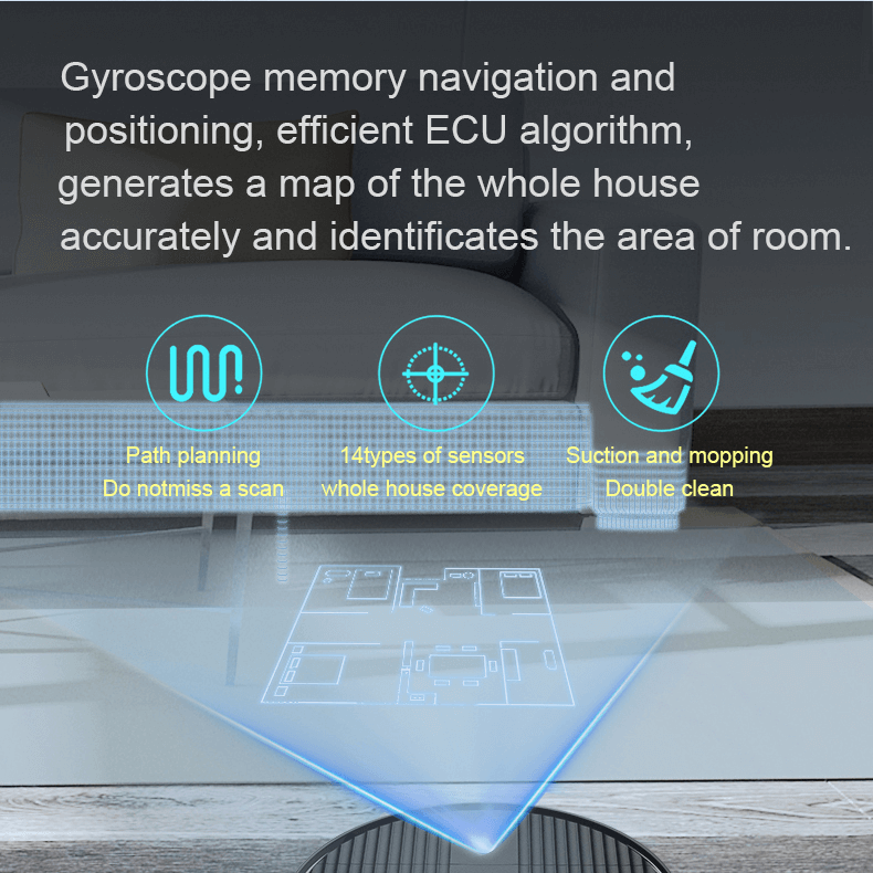 Nhờ vào bộ con quay hồi chuyển dẫn đường, Robot có thể ghi nhớ khu vực làm sạch, tạo lập bản đồ không gian nhà bạn và lên kế hoạch đường đi hiệu quả. CÓ