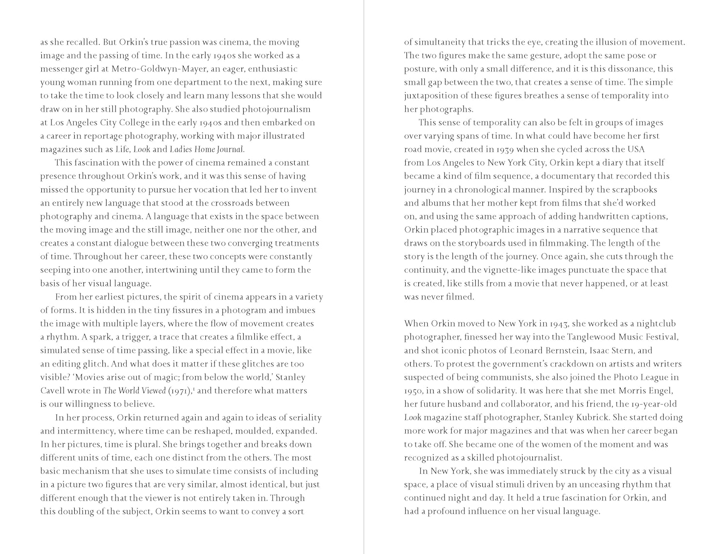 In images that range from celebrity portraits to bird’s-eye views from her apartment window, from children at play to the experiences of a lone American tourist in Italy, Orkin’s photography retains a cinematic sense of the passage of time and allows the humanity and charisma of her subjects to shine through.