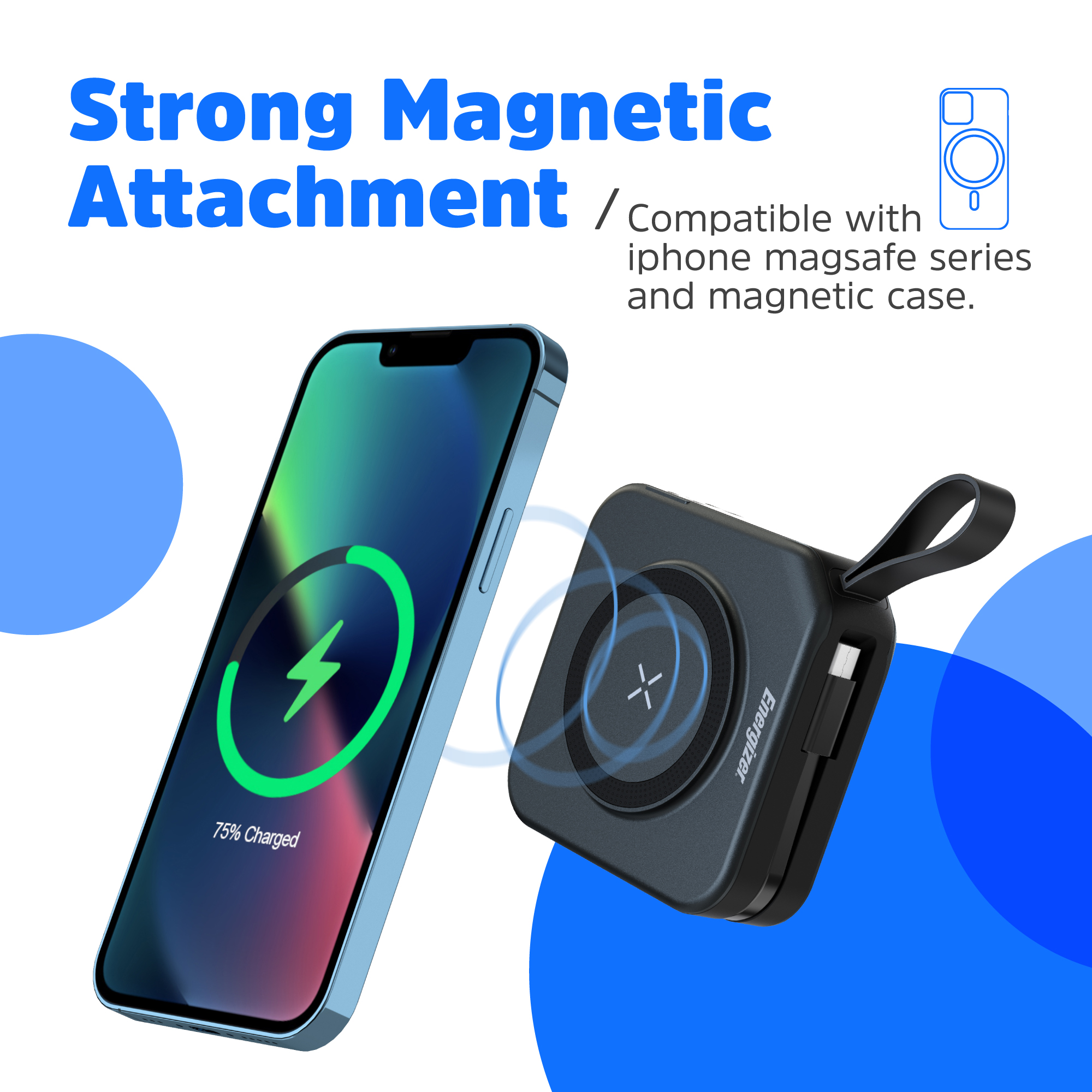 Tương thích với series i.p.hone 12 và các ốp lưng có tích hợp M.a.g.S.a.fe, bạn chỉ cần đặt sạc dự phòng lên là ngay lập tức lực hút từ tính đúng vị trí trên mặt lưng ( tương thích M.a.g.S.a.fe hoặc các thiết bị tích hợp sạc không dây hít từ tính )