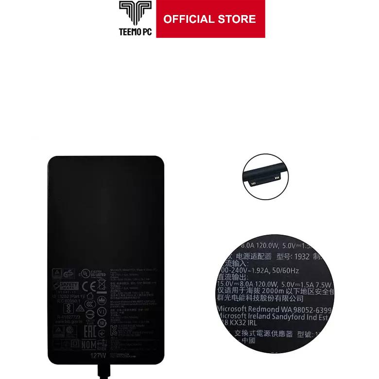 THÔNG SỐ KỸ THUẬT Tên sạc: Sạc dành cho Microsoft Surface Pro 5 - Hàng Nhập khẩu Công Suất: 36/44 Walt Chuẩn chân cắm: Surface Connecter Điện áp ra: 12V-2.58A/15V-2.58A - Điện áp vào(input): 100V