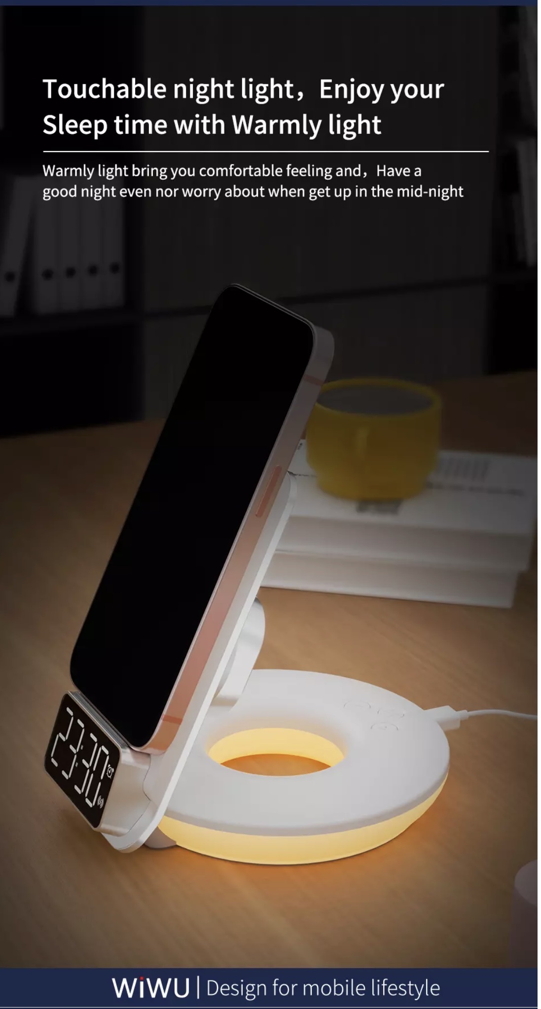 ✨Sạc Wiwu Automatic Positioning 4in1 M11 Cho Iphone, Airpods, Apple Watch hỗ trợ sạc nhanh không dây, sạc có đồng hồ hiện thị giờ - Hàng chính hãng