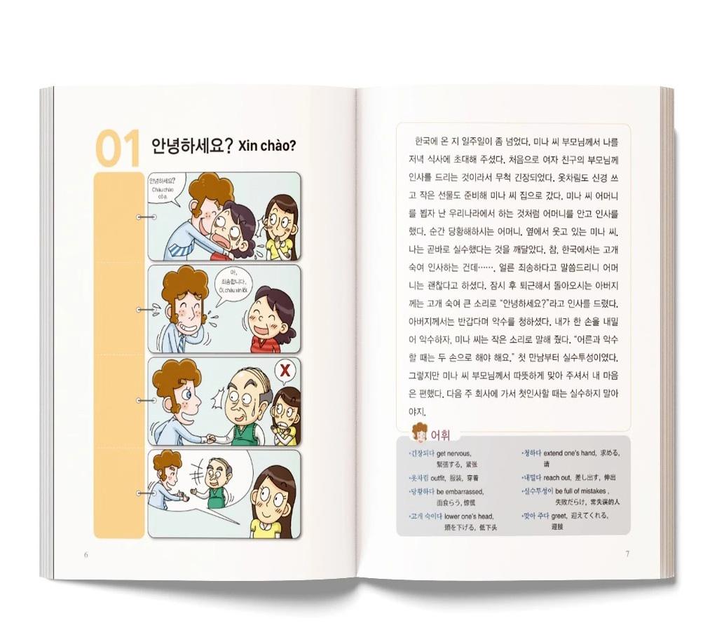 Kết hợp học ngôn ngữ và văn hoá: Cuối mỗi bài đều có phần tổng hợp từ vựng quan trọng đi kèm bản dịch rõ ràng, dễ nhớ. Đây là tài liệu tuyệt vời cho những ai đang học tiếng Hàn muốn hiểu sâu hơn về văn hoá và cách sử dụng ngôn ngữ trong đời sống thực tế.