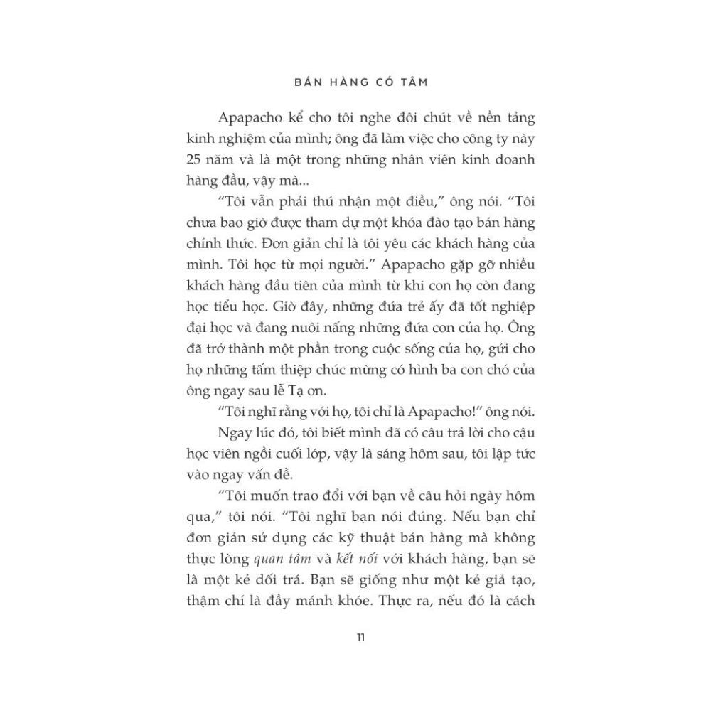 Cuốn sách này sẽ thay đổi suy nghĩ của bạn về cách thức bán hàng từ trước tới nay, đưa bạn đến một ý nghĩa mới của việc bán hàng, được tác giả gọi là bán hàng có tâm.