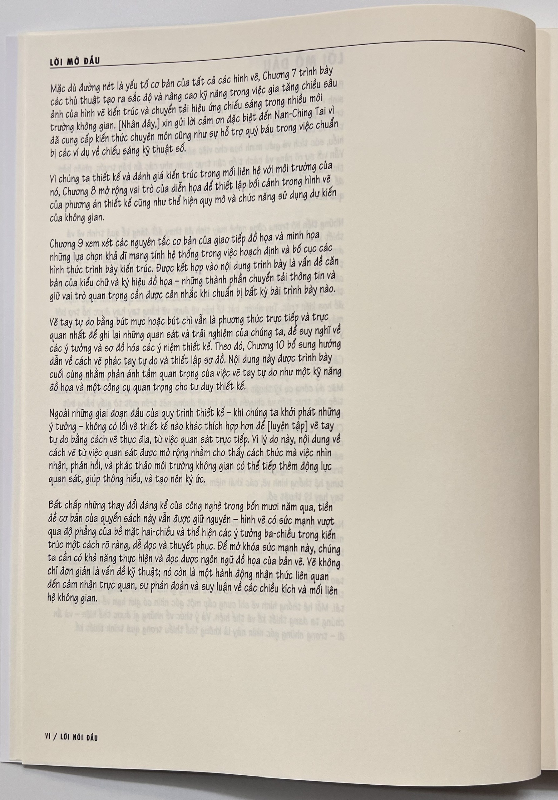 Tựa sách Bản vẽ Kiến trúc cung cấp các công cụ, nguyên tắc, và kỹ thuật vẽ quan trọng mà các nhà thiết kế sử dụng để diễn giải các ý tưởng kiến trúc thành các bản trình bày một cách hiệu quả và trực quan.