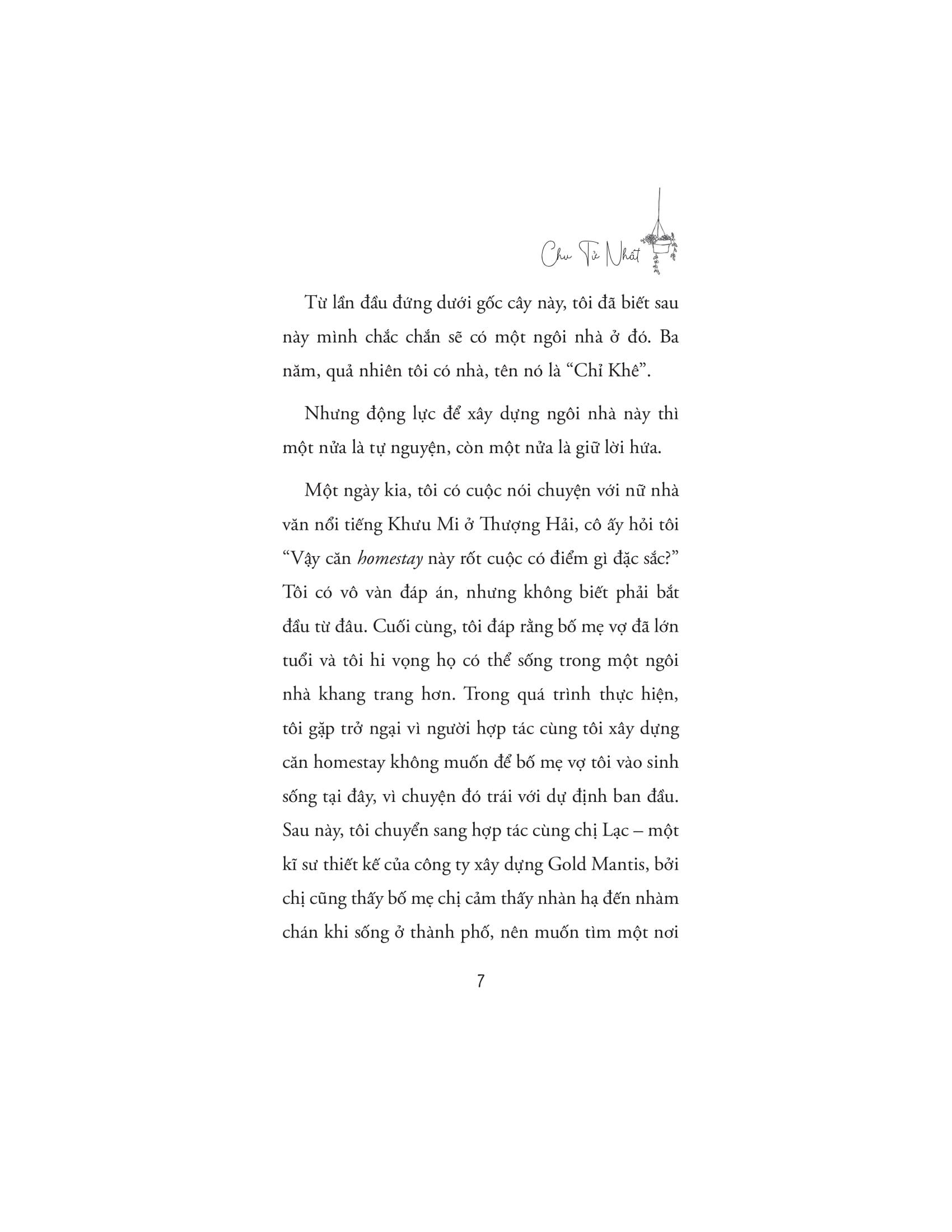 Tác giả Chu Tử Nhất, sau nhiều năm sống và làm việc ở thành phố, nhận ra rằng nhịp sống hối hả và áp lực nơi đô thị không chỉ khiến anh mệt mỏi mà còn khiến những người thân yêu của anh, đặc biệt là bố mẹ và bố mẹ vợ, khó hòa nhập. Từ những trăn trở ấy, anh quyết định đưa cả gia đình về miền quê để bắt đầu một cuộc sống mới. Cùng với sự chung sức của mọi người, anh xây dựng một căn homestay nhỏ, không chỉ là nơi trú ngụ mà còn là biểu tượng cho giấc mơ hòa m.ình với thiên nhiên và tìm lại sự bình yên.