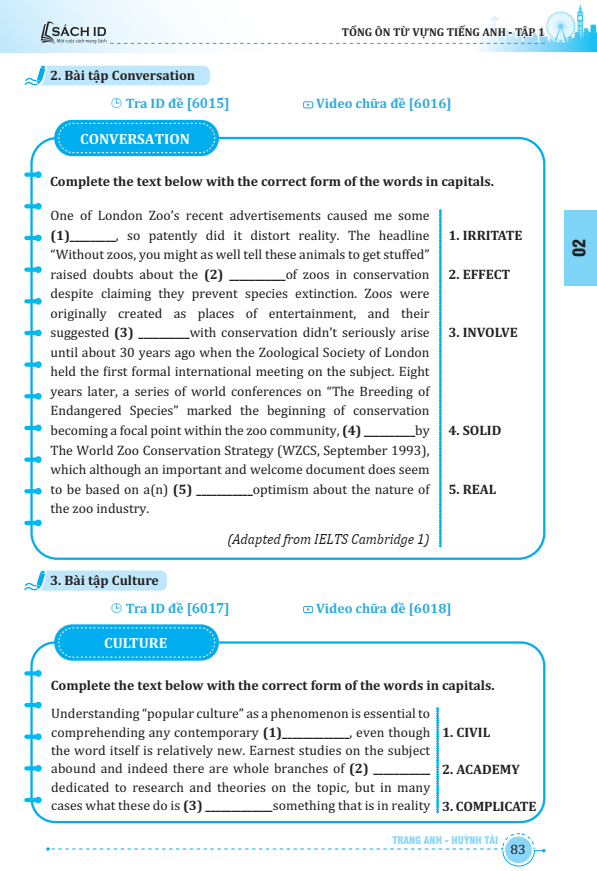Đa phần các chủ đề trong bộ sách này đều có bảng hệ thống từ vựng – cấu trúc – cụm từ. Hơn thế nữa, với việc bao quát toàn bộ các chủ điểm từ vựng trong tiếng Anh từ mức độ cơ bản đến nâng cao cùng với một số lượng lớn câu hỏi bài tập từ vựng thực hành có lời giải chi tiết kèm video chữa, bộ sách này chắc chắn sẽ là tư liệu tham khảo bổ ích cho các sĩ tử để chuẩn bị tốt cho các kì thi.