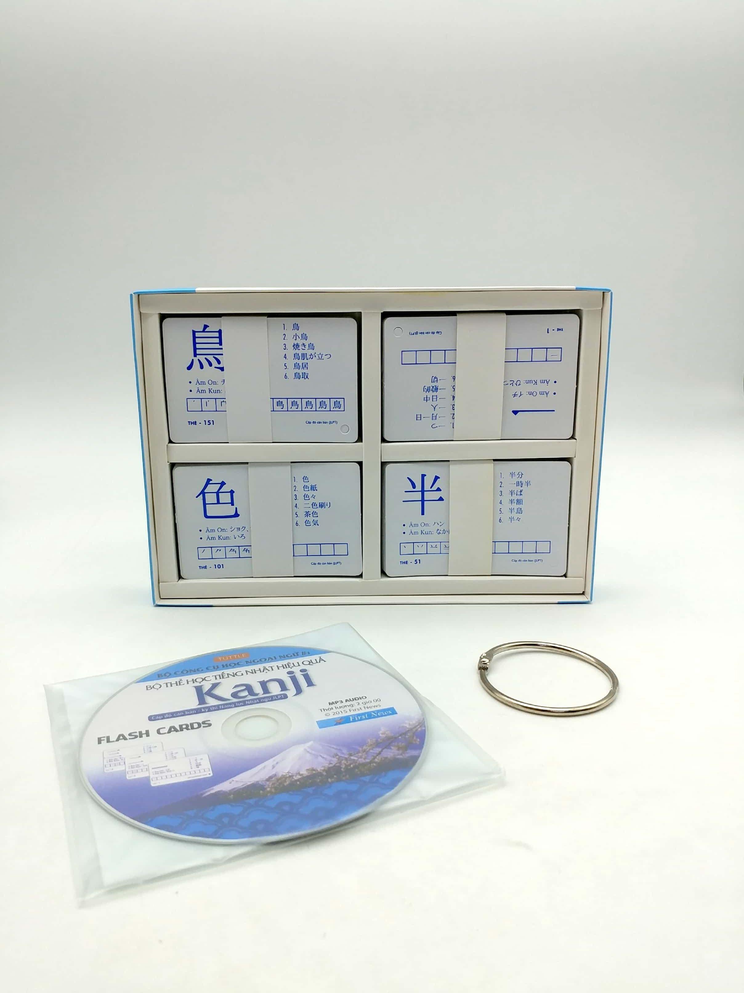Mua tại TiktokBộ Thẻ Học Tiếng Nhật Hiệu Quả Kanji Mọi điểm bạn cần học về những chữ căn bản trong tiếng Nhật đều có trong chiếc hộp này: - 200 thẻ học từ có bấm sẵn lỗ, mỗi thẻ giới thiệu một Kanji phổ thông - Đĩa CD ghi lại giọng phát âm của người Nhật bản xứ, với 1200 từ và cụm từ tiếng Nhật - Một sách hướng dẫn có một số mẹo luyện tiếng Nhật - Các hình ảnh gợi nhắc các nét trong Kanji, giúp người học nhớ cả mặt chữ và phần nghĩa - Công cụ ôn bài lý tưởng cho người học thi JPLT, cấp độ căn bản hay các kì thi tiếng Nhật cấp độ tương đương