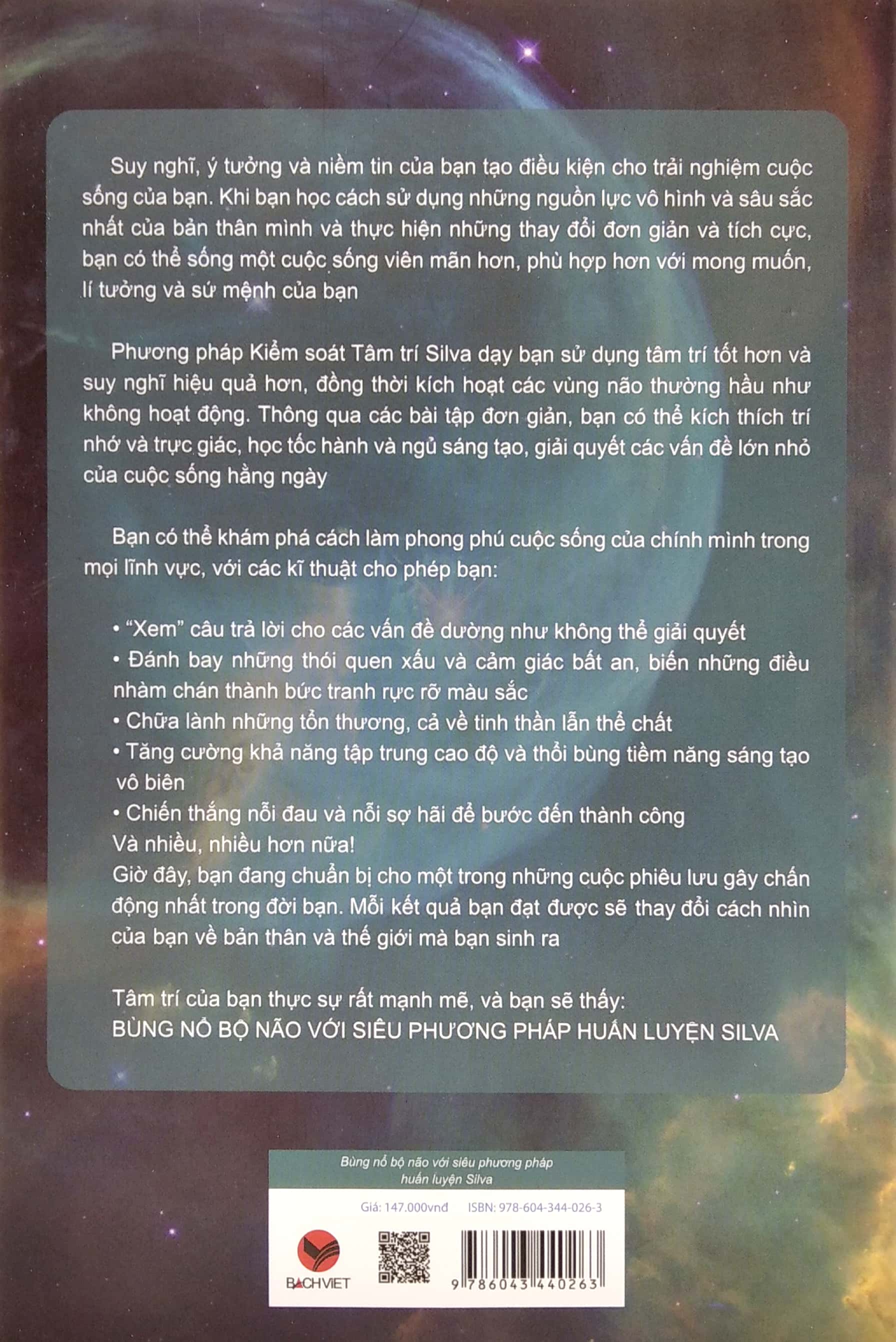 Phương pháp kiểm soát tâm trí Silva dạy bạn cách sử dụng tâm trí tốt hơn và suy nghĩ hiệu quả hơn, đồng thời kích hoạt các vùng não thường hầu như không hoạt động. Thông qua các bài tập đơn giản, bạn có thể kích thích trí nhớ và trực giác, học tốc hành và ngủ sáng tạo, giải quyết các vấn đề lớn nhỏ của cuộc sống hàng ngày.