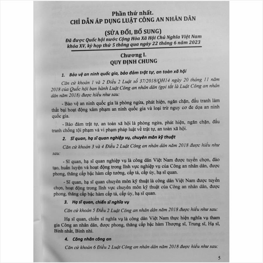Phần thứ 1. Chỉ dẫn áp dụng Luật Công an nhân dân (sửa đổi, bổ sung) đã được Quốc hội nước Cộng hòa xã hội chủ nghĩa Việt Nam khóa XV, kỳ họp thứ 5 thông qua ngày 22 tháng 6 năm 2023