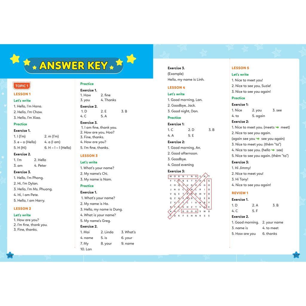 - Nội dung ngắn gọn, dễ học: 100 cấu trúc được gói gọn trong 10 chủ đề, mỗi chủ đề bao gồm 10 bài học Với các chủ đề quen thuộc và gần gũi trong cuộc sống như Greetings, Family & Friends, Study & School… không chỉ giúp các em tiếp thu kiến thức Ngữ pháp hiệu quả hơn mà còn biết cách vận dụng vào giao tiếp thực tế hàng ngày.