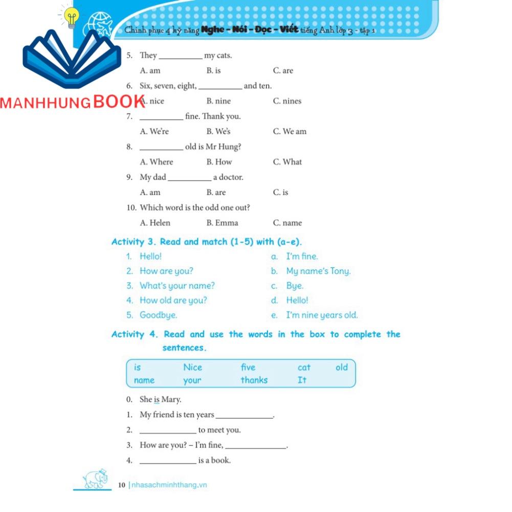 Chinh phục 4 kỹ năng tiếng Anh Nghe - Nói - Đọc - Viết Lớp 3, tập 1, Unit 1
