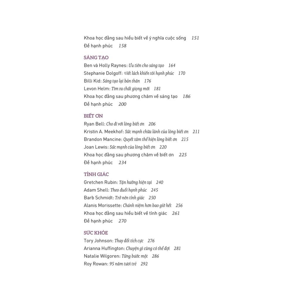 Một hướng dẫn đầy cảm hứng và đáng ngạc nhiên để có những thói quen sống hạnh phúc từ các chuyên gia tại tạp chí Live Happy, ấn phẩm phong cách sống hàng đầu cống hiến cho công cuộc mưu cầu hạnh phúc đích thực của muôn đời.
