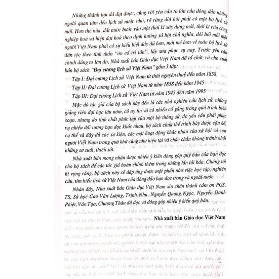Đất nước đang bước vào một thời kỳ xây dựng mới, thời kỳ của công nghiệp hóa và hiện đại hoá theo định hướng xã hội chủ nghĩa, đòi hỏi mỗi một người Việt Nam phải có sự hiểu biết đầy đủ hơn, mới mẻ hơn về toàn bộ lịch sử dân tộc theo tinh thần ôn cố tri ân, lấy xưa phục vụ nay. Trước yêu cầu chính đáng và to lớn đó, Nhà xuất bản Giáo dục đã tổ chức biên soạn và cho xuất bản Bộ sách Đại cương lịch sử Việt Nam gồm 3 tập: