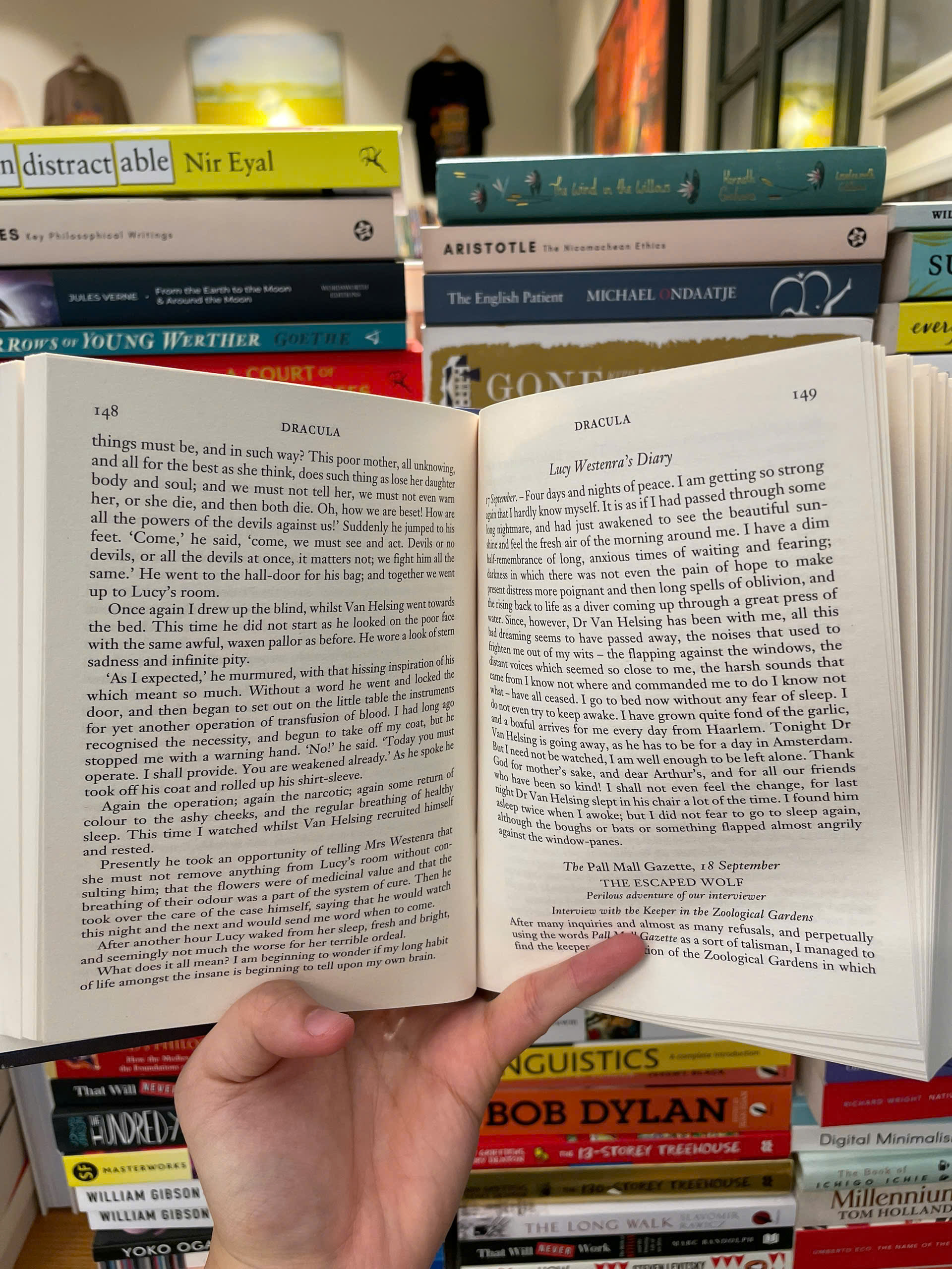 'Hắn nằm đó, trông như thể tuổi trẻ đã được hồi sinh, mái tóc và ria mép trắng muốt đã chuyển sang màu xám đen như sắt, đôi má đầy đặn hơn, và làn da trắng bên dưới dường như đỏ như hồng ngọc; miệng đỏ hơn bao giờ hết, vì trên môi là những vệt máu tươi, chảy ra từ khóe miệng, chảy xuống cằm và cổ. Ngay cả đôi mắt sâu thẳm, rực lửa cũng dường như nằm giữa lớp da sưng phồng, vì mí mắt và túi dưới mắt đều sưng phồng. Dường như toàn bộ sinh vật kinh khủng đó chỉ đơn giản là bị nhồi nhét đầy máu; hắn nằm đó như một con đỉa bẩn thỉu, kiệt sức vì no nê.'