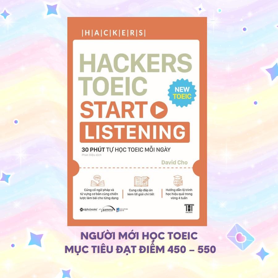 Hackers TOEIC Start Listening - 30 Phút Tự Học TOEIC Mỗi Ngày Nhà xuất bản : Nhà Xuất Bản Dân Trí. Công ty phát hành : Alphabooks. Tác giả : David Cho. Kích thước :