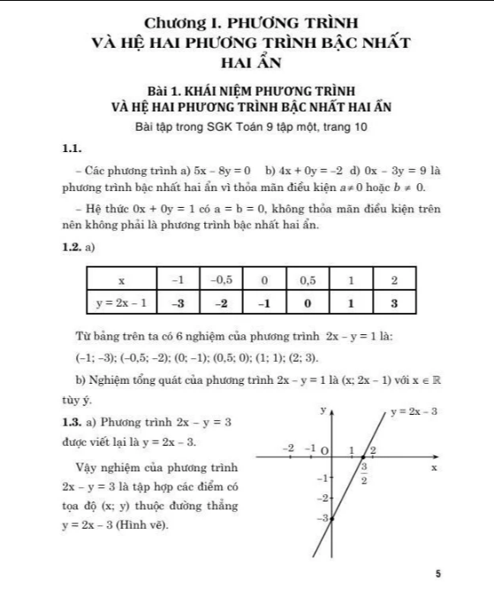 Toán lớp 9 Bài 1 Khái niệm phương trình và hệ hai PT bậc nhất hai ẩn - trang 5, 10 |Kết nối tri thức