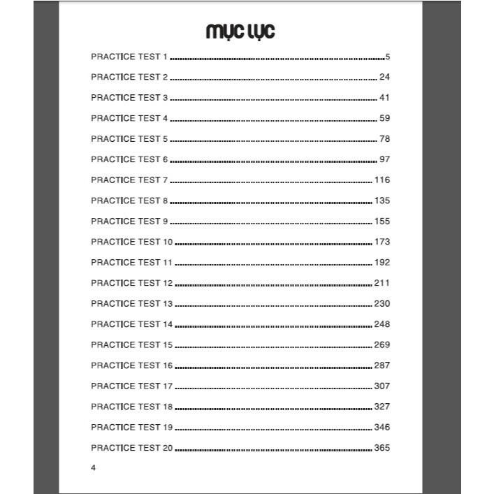 Cuốn sách này gồm có 20 đề luyện tập “Practice Test”. Mỗi đề được biên soạn các loại câu hỏi trắc nghiệm theo dạng đề thi tốt nghiệp THPT mới và bao gồm các chủ điểm về phát âm, từ vựng, ngữ pháp và kỹ năng đọc hiểu.