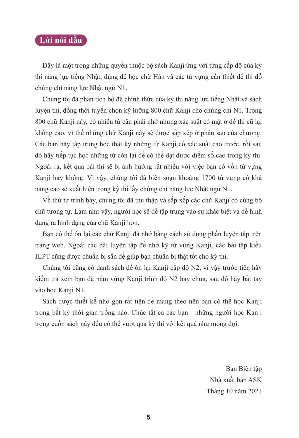 Mua tại TiktokKỳ Thi Năng Lực Nhật Ngữ - Sổ Tay Hán Tự N1 - 800 Bao gồm 800 chữ Hán tự thường được ra trong các Kỳ thi năng lực Nhật ngữ cấp độ N1. Bao gồm các đặc trưng: