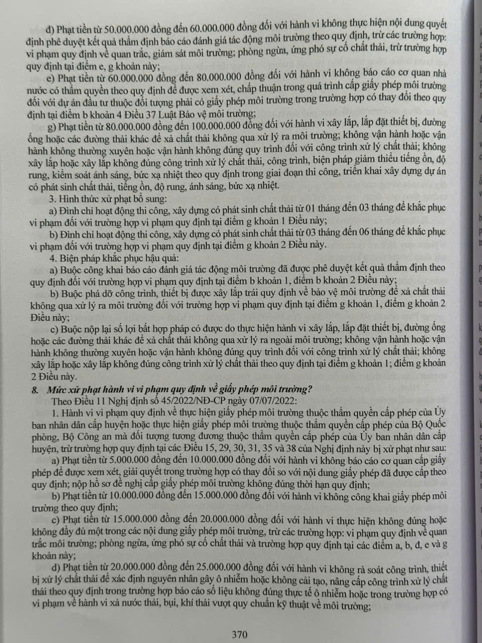 Sách Luật Bảo Vệ Môi Trường, Luật Địa Chất Và Khoáng Sản Và Văn Bản Hướng Dẫn Thi Hành, Quy Định Về Xử Phạt Vi Phạm Hành Chính Trong Lĩnh Vực Bảo Vệ Môi Trường