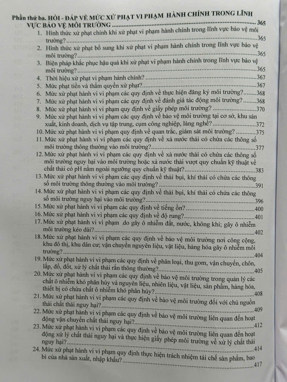 Phần thứ ba. HỎI – ĐÁP VỀ XỬ PHẠT VI PHẠM HÀNH CHÍNH TRONG LĨNH VỰC BẢO VỆ MÔI TRƯỜNG