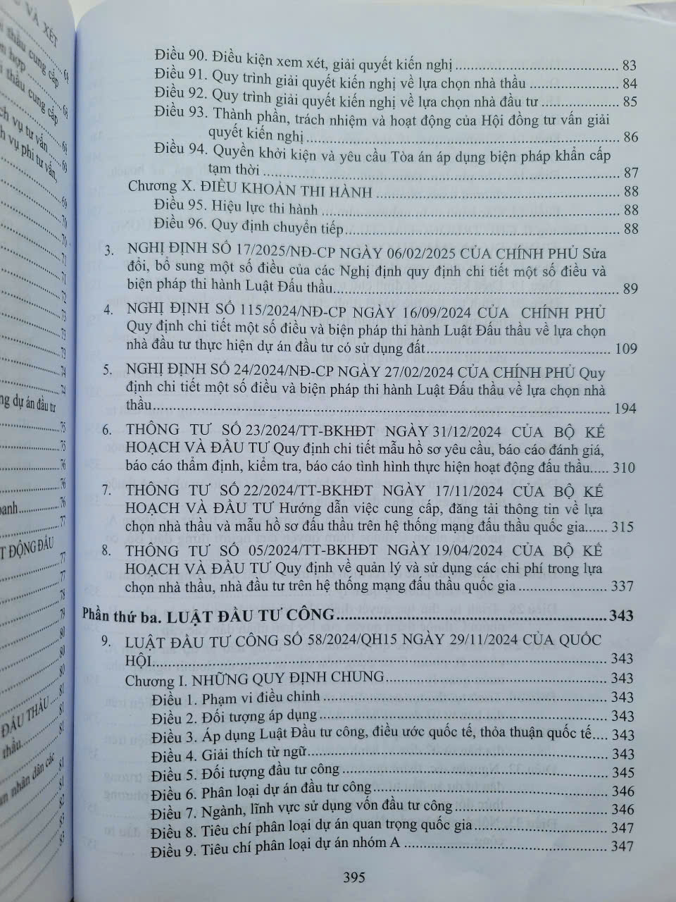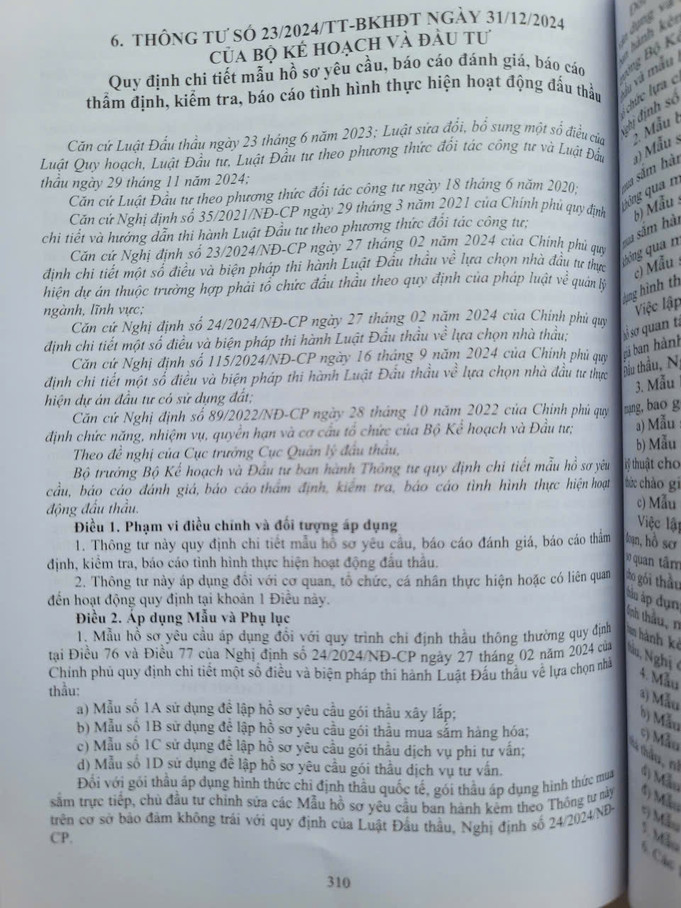 Ngày 23/06/2023 Luật Đấu thầu (sửa đổi) được Quốc hội thông qua. Luật có hiệu lực từ 01/01/2024. Sau đó Chính phủ, Bộ Kế hoạch và đầu tư cũng đã ban hành nhiều quy định chi tiết hướng dẫn thi hành Luật Đấu thầu và các quy định mới về lựa chọn nhà thầu, nhà đầu tư như Nghị định số 17/2025/NĐ-CP ngày 06/02/2025 Sửa đổi, bổ sung một số điều của các Nghị định quy định chi tiết một số điều và biện pháp thi hành Luật Đấu thầu, Nghị định số 115/2024/NĐ-CP ngày 16/09/2024 Quy định chi tiết một số điều và biện pháp thi hành Luật Đấu thầu về lựa chọn nhà đầu tư thực hiện dự án đầu tư có sử dụng đất, Thông tư số 22/2024/TT-BKHĐT ngày 17/11/2024 Hướng dẫn việc cung cấp, đăng tải thông tin về lựa chọn nhà thầu và mẫu hồ sơ đấu thầu trên hệ thống mạng đấu thầu quốc gia…