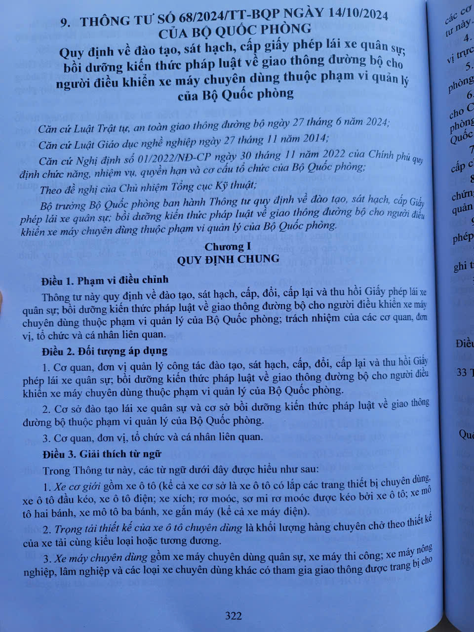 - Toàn bộ sách bìa mềm khổ lớn 20 x 28 cm phân phối bởi Nhà sách Nam Việt đều được bọc sách Plastic MIỄN PHÍ và xuất hóa đơn điện tử đầy đủ, nhanh chóng. ...//… Lời giới thiệu: Luật Trật tự, an toàn giao thông đường bộ số 36/2024/QH15 được Quốc hội thông qua ngày 27/6/2024, có hiệu lực thi hành từ ngày 01/01/2025 với nhiều điểm mới như: thay đổi phân hạng giấy phép lái xe; tăng độ tuổi tối đa của người lái xe; bổ sung quy định trừ điểm giấy phép lái xe; từ 01/01/2026, không được cho trẻ em dưới 10 tuổi và chiều cao dưới 1,35m ngồi cùng hàng ghế tài xế... Để triển khai Luật kịp thời, thống nhất, hiệu lực, hiệu quả, Chính phủ và các Bộ ngành cũng đã ban hành nhiều văn bản hướng dẫn Luật như Nghị định số 151/2024/NĐ-CP ngày 15/11/2024 Quy định chi tiết một số điều và biện pháp thi hành Luật Trật tự, an toàn giao thông đường bộ; Thông tư số 73/2024/TT-BCA ngày 15/11/2024 Quy định công tác tuần tra, kiểm soát, xử lý vi phạm pháp luật về trật tự, an toàn giao thông đường bộ của cảnh sát giao thông; Nghị định số 168/2024/NĐ-CP ngày 26/12/2024 Quy định xử phạt vi phạm hành chính về trật tự, an toàn giao thông trong lĩnh vực giao thông đường bộ; trừ điểm, phục hồi điểm giấy phép lái xe... Nhằm góp phần phổ biến những quy định pháp luật về giao thông đường bộ cho các cơ quan ban ngành, cá nhân trong và ngoài nước, Nhà sách Nam Việt xin trân trọng giới thiệu cuốn sách: Luật Trật Tự, An Toàn Giao Thông Đường Bộ Và Văn Bản Hướng Dẫn Quy Trình Tuần Tra, Xử Lý Vi Phạm Về Trật Tự, An Toàn Giao Thông Đường Bộ, Đào Tạo, Sát Hạch, Cấp Giấy Phép Lái Xe …//… Nội dung cuốn sách gồm 4 phần sau: Phần thứ nhất. Luật trật tự, an toàn giao thông đường bộ và nghị định hướng dẫn thi hành Phần thứ hai. Quy định công tác tuần tra, kiểm soát, xử lý vi phạm pháp luật về trật tự, an toàn giao thông đường bộ Phần thứ ba. Quy định về đào tạo, sát hạch, cấp giấy phép lái xe Phần thứ tư. Quy định về xử phạt vi phạm hành chính trong lĩnh vực giao thông đường bộ *** Quý khách hàng hãy an tâm khi mua sách tại Nhà sách Nam Việt, cam kết uy tín, chất lượng, sách bản gốc chuẩn đẹp, được kiểm hàng, hài lòng mới thanh toán, sách đã được bọc plastic cao cấp miễn phí! …//… Cảm ơn các bạn đã ghé thăm shop Nhà sách Nam Việt ! Sách Luật Trật Tự, An Toàn Giao Thông Đường Bộ Và Văn Bản Hướng Dẫn Quy Trình Tuần Tra, Xử Lý Vi Phạm Về Trật Tự, An Toàn Giao Thông Đường Bộ, Đào Tạo, Sát Hạch, Cấp Giấy Phép Lái Xe Sách Luật Trật Tự, An Toàn Giao Thông Đường Bộ Và Văn Bản Hướng Dẫn Quy Trình Tuần Tra, Xử Lý Vi Phạm Về Trật Tự, An Toàn Giao Thông Đường Bộ, Đào Tạo, Sát Hạch, Cấp Giấy Phép Lái Xe