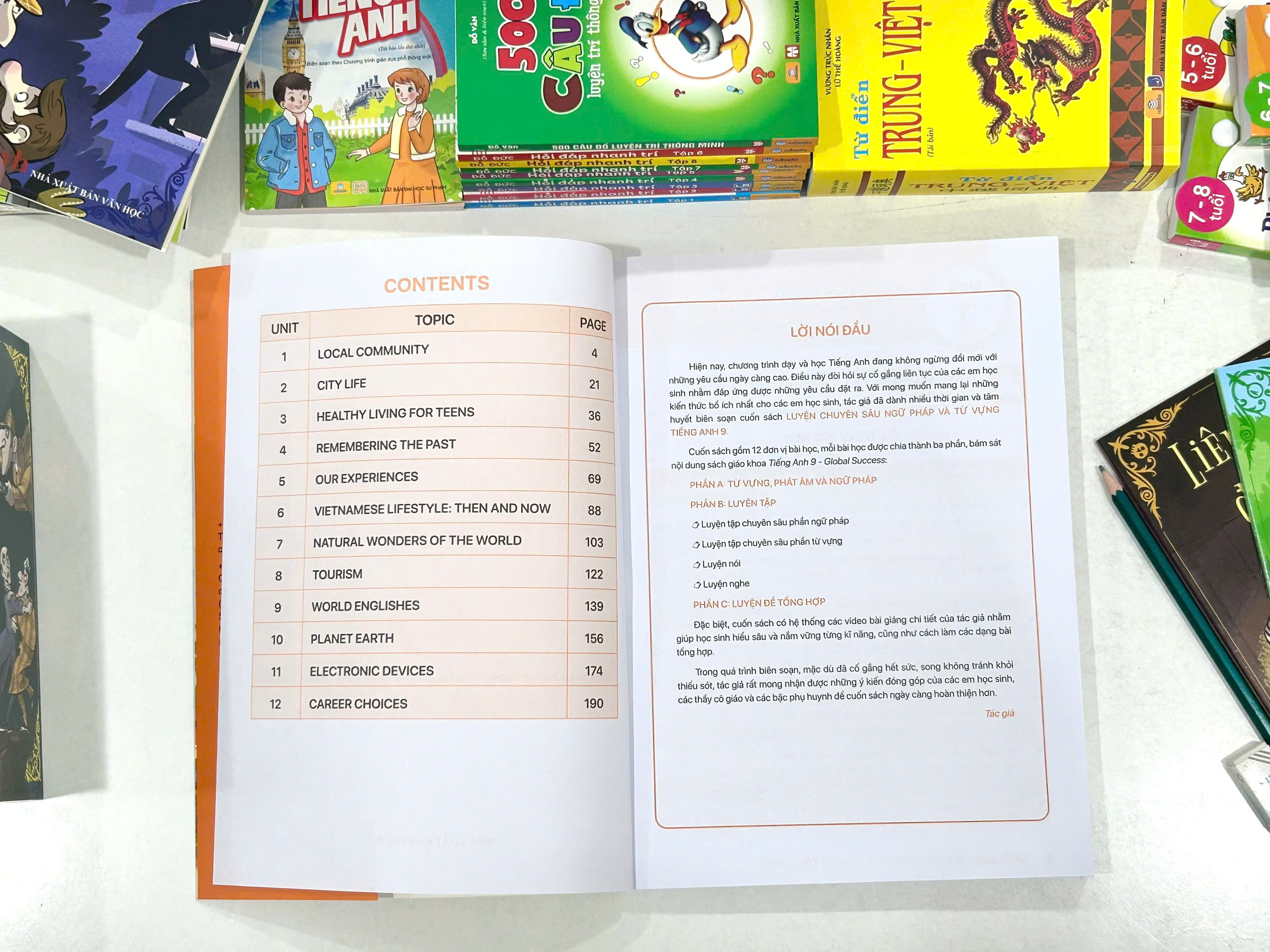 Cuốn sách gồm 12 đơn vị bài học, mỗi bài học được chia thành 3 phần, bám sát nội dung sách giáo khoa Tiếng Anh 9 - Global Success.